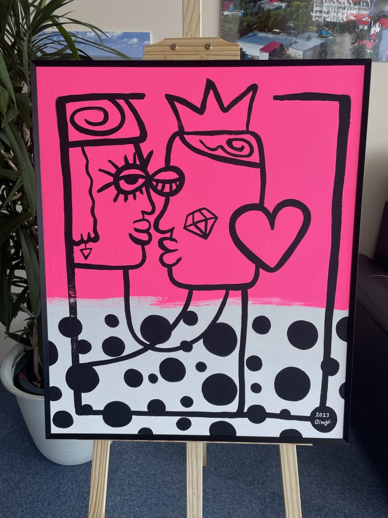 キャンパスに描かれた宇宙の調和は私たちが生きる地球上でも実現可能であり、みなが手を取り合って1つになれるという願いを込めています。