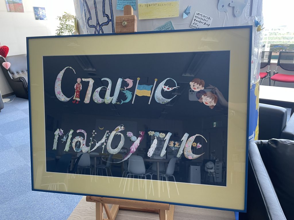 鶴花さんとOimyさんの作品はウクライナ避難民交流カフェ「ドゥルーズィ」で10月末まで展示します。