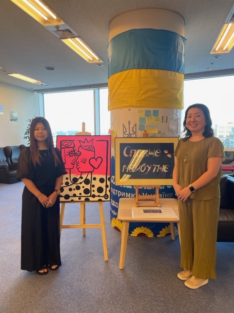 8月3日(木)2名のアーティストの作品をウクライナ避難民交流「カフェドゥルーズィ」に展示しました。