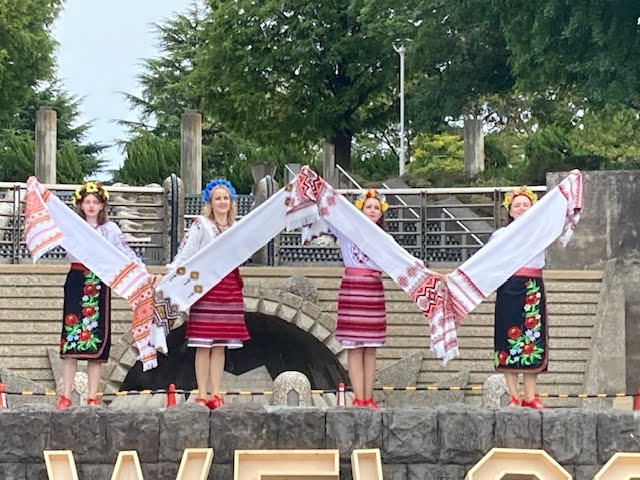 3日(日)は、ウクライナの踊りや歌をステージで披露しました。最後は参加者も一緒にウクライナの踊りのステップを練習した後、大きな輪を作って踊りを楽しみました。