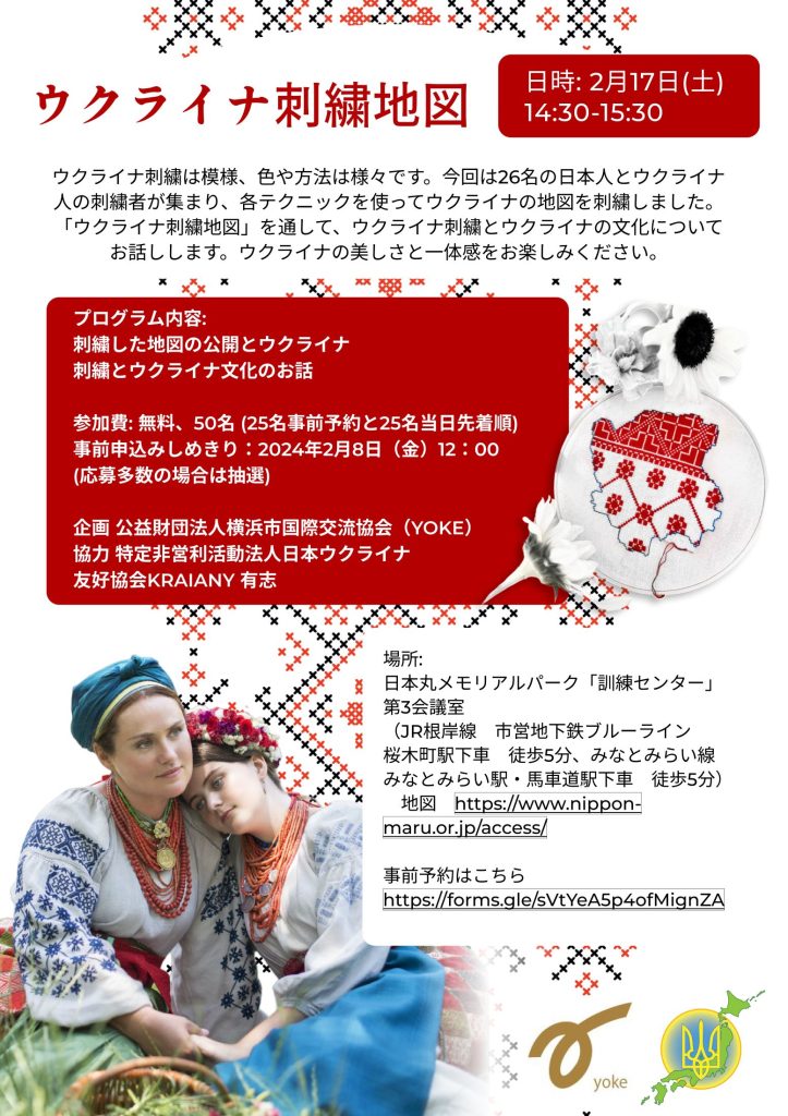 今回は、特定非営利活動法人日本ウクライナ友好協会協力のもと「ウクライナ刺繍地図」と通じてウクライナ刺繍とウクライナの文化を知る講座を開催します。