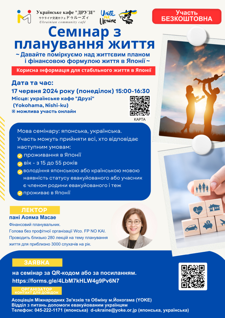 *Через основну мету заходу «Роздуми про планування життя та фінансове становлення в Японії», він орієнтований на людей працездатного віку (від 15 до 55 років). Просимо з розумінням поставитися до цього.