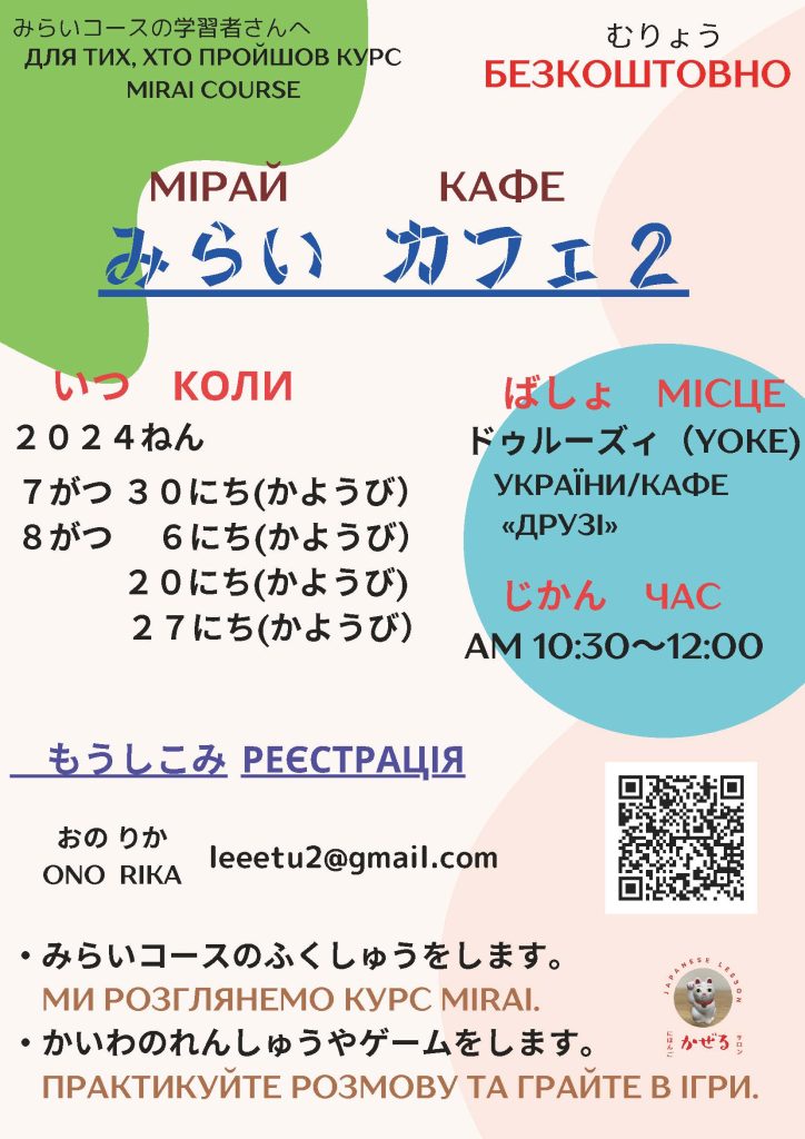 ・Ми повторимо японську мову, яку ми вивчили на уроці японської мови «Mirai Course1».