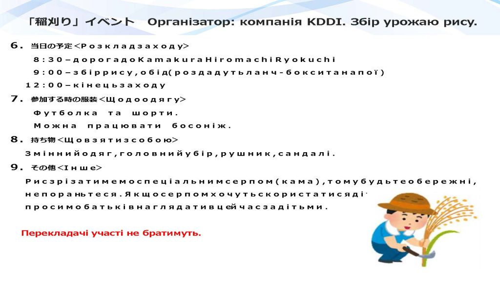 Захід «Збирання рису».