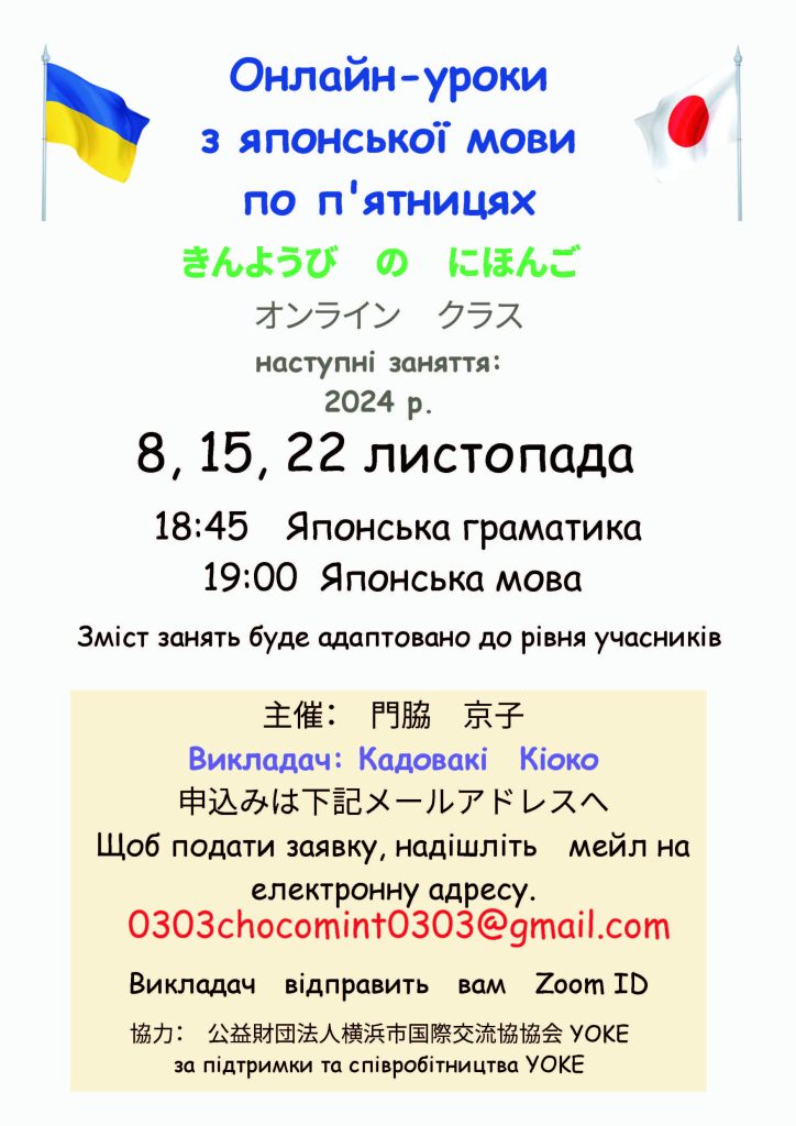 Онлайн-заняття з японської мови відбудуться у п’ятницю, 8, 15 та 22 листопада.