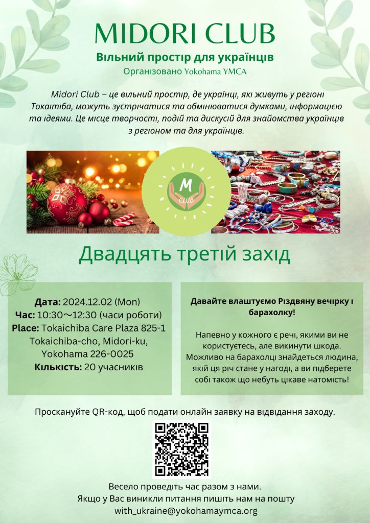 На цьому заході давайте влаштуємо Різдвяну вечірку і барахолку!