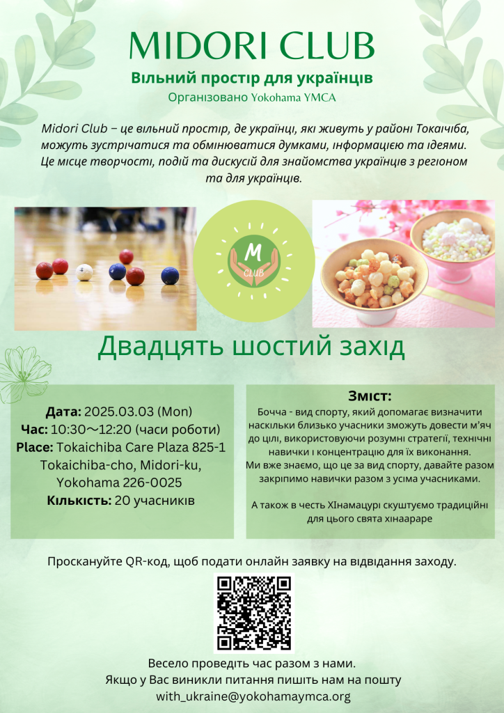 Якщо у Вас виникли будь-які питання пишіть нам на пошту with_ukraine☆yokohamaymca.org(Будь ласка, змініть ☆ на @ під час надсилання електронного листа.)