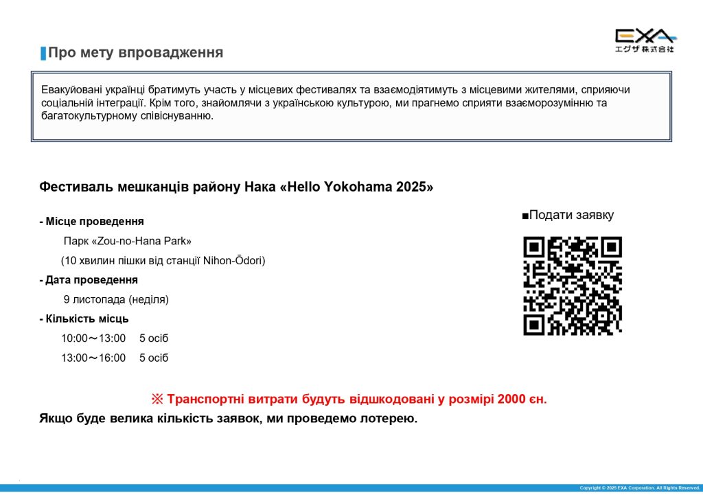До уваги всіх евакуйованих українців, які проживають у місті Йокогама!
