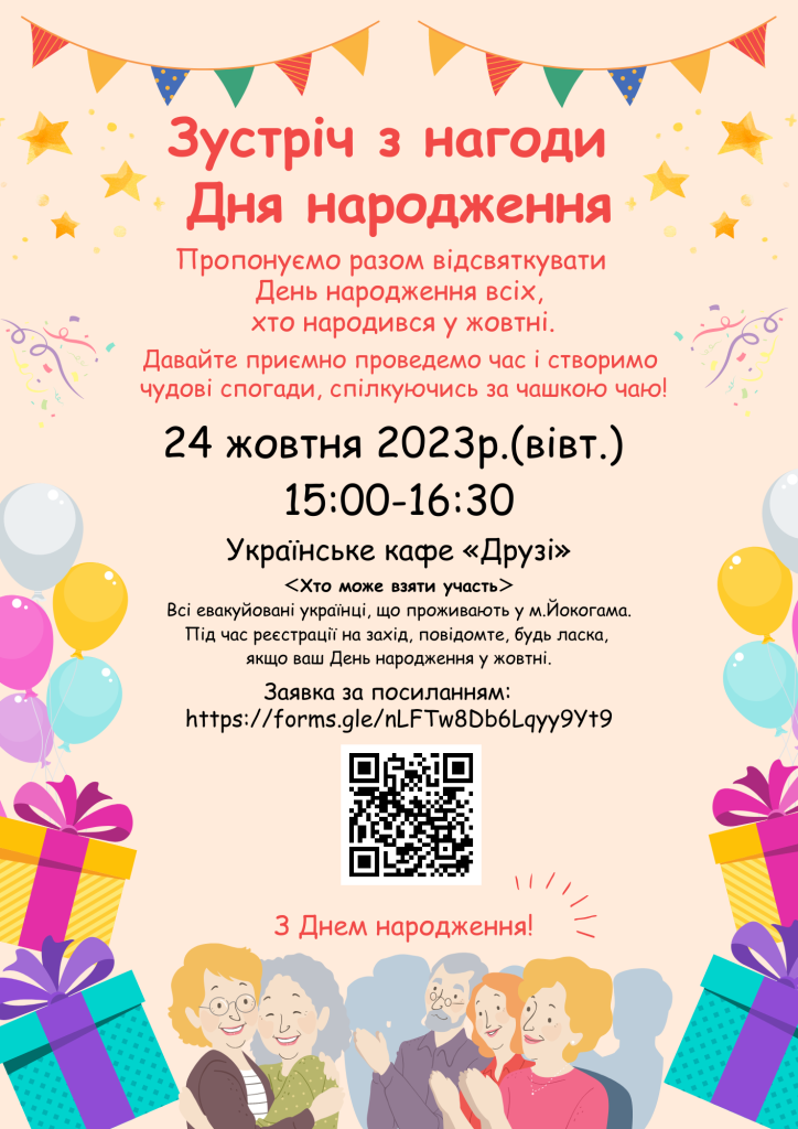 Всі евакуйовані українці, що проживають у м.Йокогама. Під час реєстрації на захід, повідомте, будь ласка, якщо ваш День народження у жовтні.