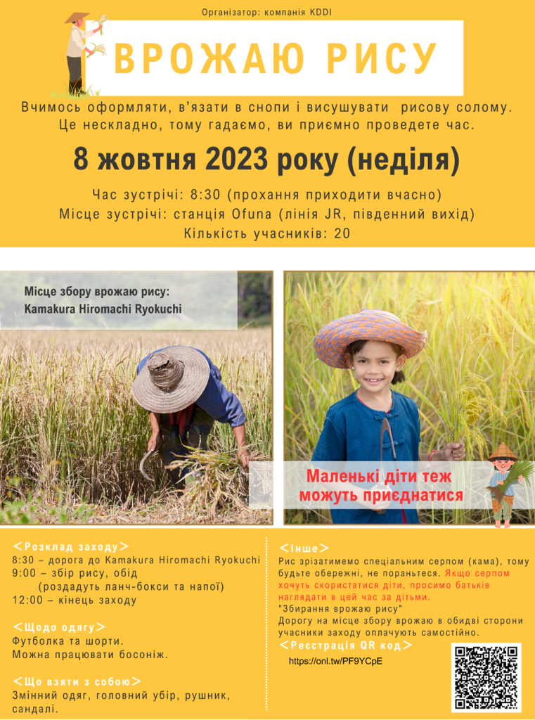 Запрошуємо взяти участь в “Інеґарі”! (Сільськогосподарська діяльність, під час якої зрізають стиглі рисові колоски для збору врожаю)