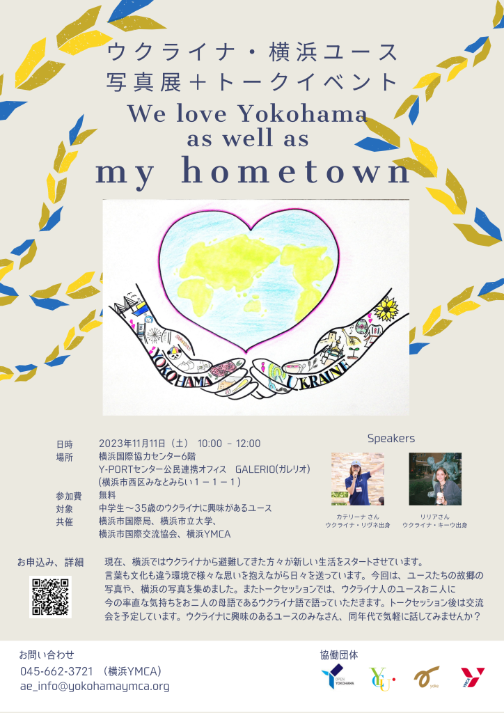 今回は、ユースたちの故郷の写真や、横浜の写真を集めました。またトークセッションでは、ウクライナ人のユースお二人に今の率直な気持ちをお二人の母語であるウクライナ語で語っていただきます。