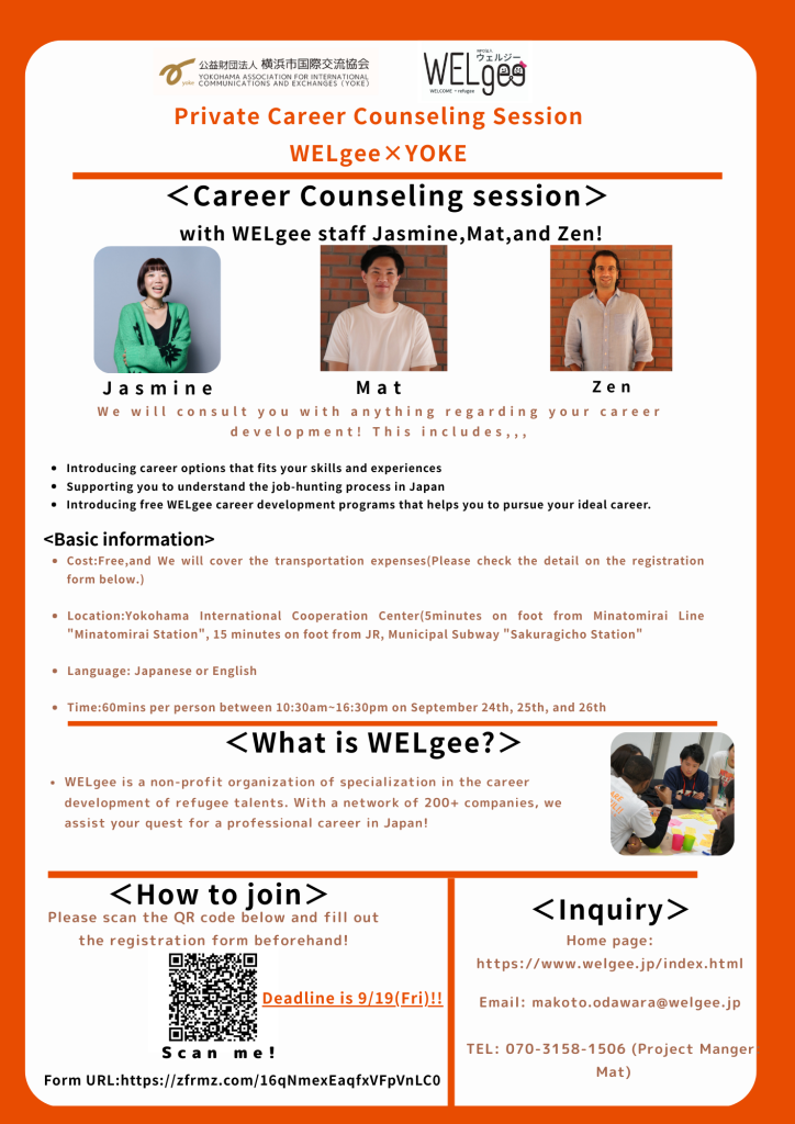 9月24日(水)・25日(木)・26日(金)に個別キャリア相談会(予約制)を実施します。