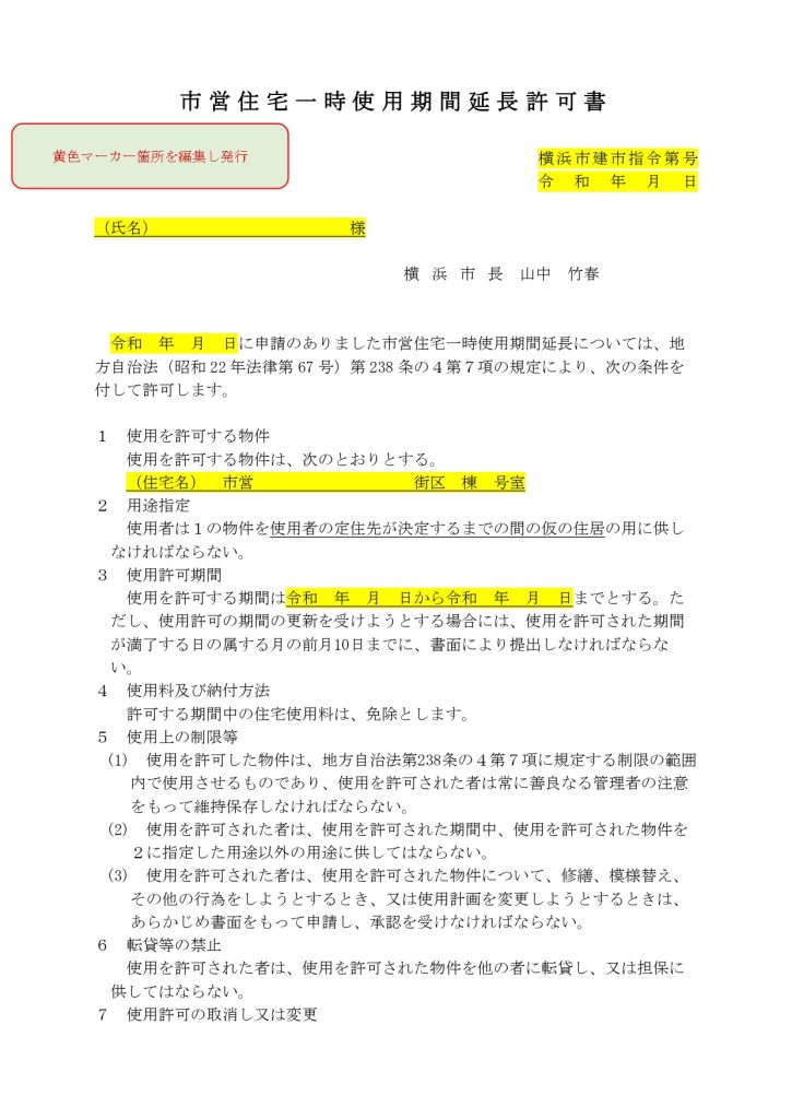 市営住宅使用期間延長手続きについて