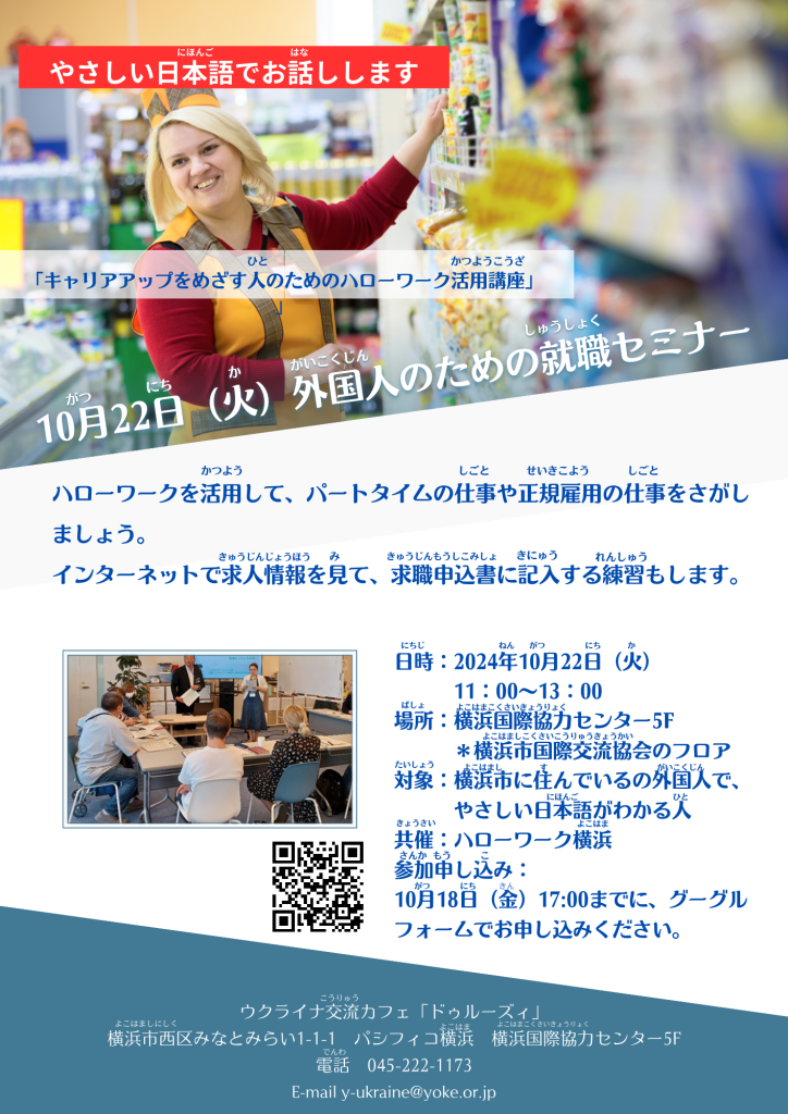 10月22日(火)在住外国人のための就職セミナー「キャリアアップをめざす人のためのハローワーク活用講座」