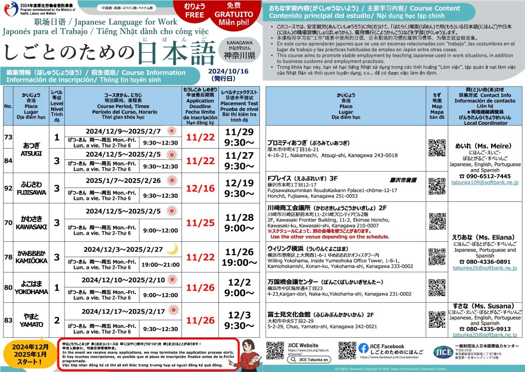 「JICEしごとのための日本語12月~2月(100時間)」受講者募集のお知らせ