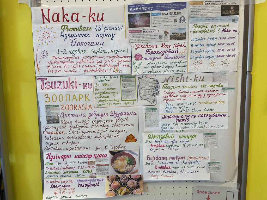 ウクライナ交流カフェ「ドゥルーズィ」のスタッフが、「広報よこはま」5月号の情報のうちウクライナのみなさんの役に立つ情報を選び、ウクライナ語で案内を作りました。